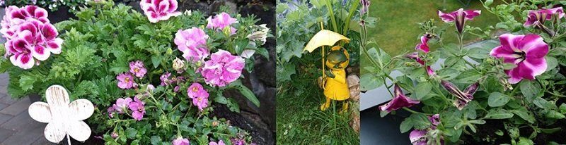 Trotz "Schietwetter" war ich am Pfingstdienstag nicht untätig, sondern habe im Garten die Rose "Shakespeare" eingepflanzt und die Balkonkästen mit Petunien bestückt. Der Regen hilft hoffentlich beim Anwachsen.