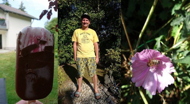 der Mensch stöhnt über die anhaltende Hitze, denn es sind "36 Grad und es wird noch heißer..." und M.Schubert gönnt sich ein erfrischendes Bad im Naturfreibad und/oder ein Eis...